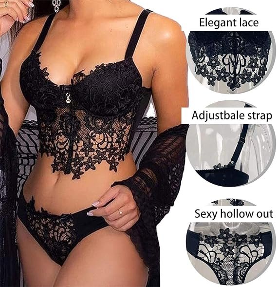 Stile: Reggiseno bralette e slip in pizzo da donna; Babydoll Lingerie Donna Pizzo; Lingerie di pizzo; Completo Intimo Donna;